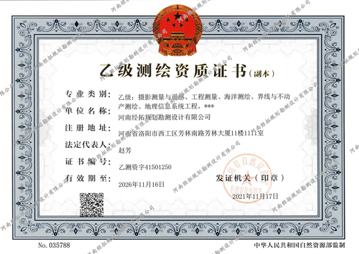 乙级测绘资质证书