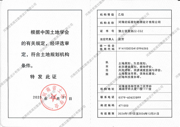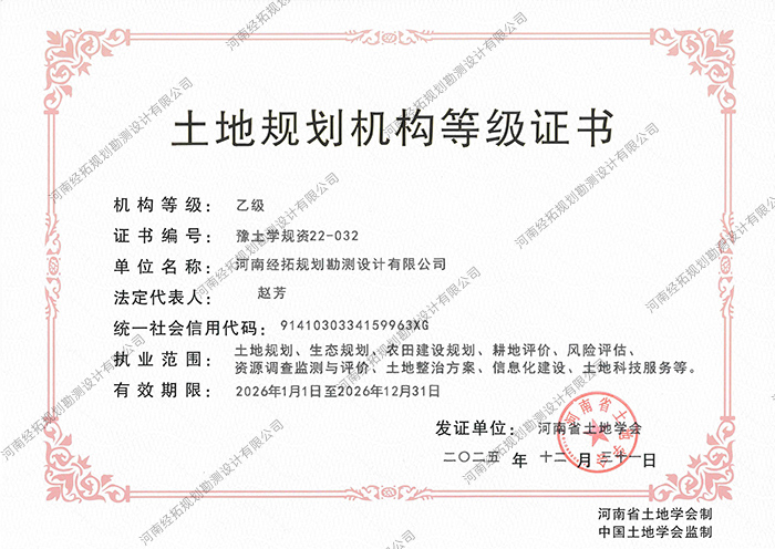 土地规划机构等级证书